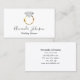 Este cartão de visita apresenta um belo design gráfico de anel de diamante branco e ouro na frente com seu nome e título, com o lado de trás inteiro disponível para informações personalizadas, incluindo endereço e número de telefone. Perfeito para um planejador de casamento ou fotógrafo de casamento.