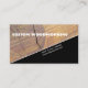Esta frente de cartão de visita apresenta uma fotografia aproximada de madeira de cedro manchada. A fotografia preenche o segmento esquerdo da placa e é colocada diagonalmente contra um fundo preto puro. Os dois elementos são separados por uma linha branca. Todo texto na frente é branco e preto no verso. Clique na opção personalizar para selecionar uma cor de fundo na parte traseira que não seja branca. Esta cartão de visita de frente de fotografia de madeira pode funcionar bem para restaurações de madeira, carpinteiros, trabalhos de construção ou talvez para a sua empresa.