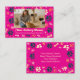 Este cartão de visita é projetado para proprietários de lojas e de afogamentos de animais de estimação que querem adicionar um toque pessoal. A placa apresenta um grande quadro fotográfico personalizável na parte frontal, permitindo que você mostre sua bateria, funcionarios ou gatinhos. A design inclui um padrão lúgubre de estampas coloridas e ossos, criando uma sensação quente e amigável. Ele é totalmente personalizável, com espaços dedicados para o nome da sua categoria, número de telefone, site, email e informações de mídia social. Essa versátil carta é perfeita para se conectar com os clientes e compartilhar sua paixão por gatos.