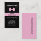 Um cartão de visita gràfica corajoso para um instrutor, um proprietário do gym ou um treinador pessoal com um dom feminino. Uma silhueta de um dumbbell cor-de-rosa brilhante está para fora contra o fundo preto rico das riscas. Seu título ou nome da empresa sentam-se no bar cor-de-rosa impressionante embaixo com sua informações de contacto abaixo contra o preto rico. Adicione toda a informação extra na atenção-obtenção traseiro. Disponível em cores alternativas com produtos de harmonização.