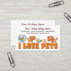 Cachorro, gato, lagarto, hamster e peixe adoráveis e fofos para anunciar seu animal de estimação sentado, cuidado com animais e serviço ambulante de cães. Faça uma boa impressão com seus clientes futuros com este design maravilhoso. Adicione o nome do seu serviço e os detalhes de contato na frente. No verso dos serviços de lista de cartões que você fornece. Mantenha consigo estes cartões de visitas de promocional úteis quando caminhar com cães ou trabalhar em rede.