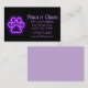 Néon único roxo e preto acende o cartão de visita do serviço de remoção de animais de estimação de pata. Personalize facilmente isso com seu próprio nome e detalhes para torná-lo seu.