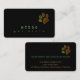 Um cartão profissional de na moda com o nome da loja de animais de estimação, com o slogan personalizado, a imagem de uma pata de cão... e o endereço e as palavras relacionadas no verso...