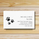 Pet dog walker cartão de visita, com uma pata preta imprime design num fundo branco. Com as letras negras, você pode adicionar suas próprias informações. Excelente para promover o seu negócio de serviços para animais de estimação!