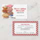 Uma variedade de tortas é feita junto com um guardanapo de gingham e um servidor de tortas nesta cartão de visita para um padeiro de torta, uma padaria ou um café. Adicione todas as suas informações de contato no verso de um painel branco contra gingham vermelho para fazer eco do guardanapo na frente. Disponível com produtos correspondentes.