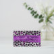 Roxo, magenta, preto. cinza e folha fina prateada e mancha-leopardo preta com um bonito traço de pelúcia roxa para o seu nome. Design de safari moderno para sua pequena empresa. Cartões de visitas de vidro feminino roxo magenta.