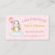Um doce Cartão de visita de mentor infantil. Pinguim bebê adorável sentado numa nuvem enquanto segurava um balão rosa com um fundo cor-de-rosa turvo. Todo o texto pode ser personalizado de acordo com suas necessidades - usando um texto cor-de-rosa e dourado. Adicione suas informações de contato, nome, telefone celular e endereço de e-mail e, em seguida, adicione mais informações sobre seu serviço no verso. Design simples e colorido para as crianças e qualquer pessoa na indústria de acolhimento de crianças.