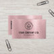 This sophisticated business card design features a chic brushed metallic pink background, offering a touch of modern luxury. Your custom logo and company name are elegantly showcased on the front in a dark, legible font, while the reverse side thoughtfully arranges contact information and a QR code for seamless networking. This design perfectly combines refined aesthetics with practical functionality, ensuring a memorable first impression.