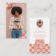 Stand out with our modern retro checkerboard photo business card. Featuring a chic pink checkerboard pattern, this design is bold, stylish, and fully customizable to suit your personal brand. The front features a full photo area for you to replace with your own image, creating a strong and personal first impression. A coordinating checkerboard pattern frames the corners of the card for a cohesive retro-modern aesthetic, while your business name is placed directly over the photo for a clean, professional, and impactful look. The reverse side continues the checkerboard design and includes space for your social media icons, QR code, and contact information, making it easy for clients and customers to connect with you. Fully customizable to match your brand style and colors, this versatile business card blends vintage inspiration with modern branding—perfect for standing out in today’s visual and social media-driven world. Ideal for a wide range of professionals and businesses, including influencers, content creators, photographers, hairstylists, makeup artists, nail technicians, estheticians, fashion brands, boutique owners, coaches, consultants, event planners, real estate agents, wellness professionals, designers, and creative entrepreneurs looking for a bold, modern, and highly personalized branding tool. Design and layout by © Moodthology Papery