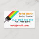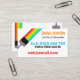Cartão de visita totalmente personalizável com a imagem de um pincel pintando um arco-íris de cores. O verso contém mais dois pincéis de pintura em ambos os lados com espaço no meio para mais texto.