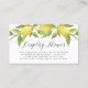 Cartão de expositor de limão festivo com limões aquosos e terrenos arborizados com um padrão de limão. Este cartão de chá para exibição do tema limão é perfeito para casamentos de verão, chás de fraldas, chás de panela e muito mais.