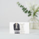 Este elegante cartão de visita apresenta o vestido de noiva da noiva e o smoking preto do noivo em aquarela. O verso apresenta suas informações com ícones das mídias sociais com um par de calçados de casamento. Perfeito para planejadores de casamento e planejadores de eventos. Você pode encontrar produtos correspondentes na minha loja.