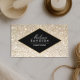 Uma imagem festiva de fundo dourada de champanhe proporciona um pano de fundo glamouroso para este modelo de cartão de negócios clássico. Seu nome ou nome comercial é elegantemente estirado em uma placa de nome cortada em ouro falso para um logotipo moderno. Um motivo na moda design para salões de beleza, designers de unhas, maquiadores, planejadores de casamento, estilistas de eventos e muito mais. © 1201AM CREATIVE