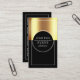Cartões de visitas para planejadores de eventos em ouro metálico e preto. Personalize com seu nome ou nome de empresa e adicione suas informações de contato no verso. Você também pode personalizar uma lista na parte traseira do cartão indicando os serviços de eventos. Exclua e adicione o seu. Este estilo tem um estilo de luxo formal. Personalizar para um planejador de eventos de solteiro ou uma empresa de planejamento de eventos. Se precisar de ajuda, entre em contato comigo através do link da mensagem de compro.