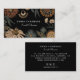Cartões de visitas de planificador de eventos florais florais modernos com elementos e folhas florais verdes e castanhos. Adicione suas informações de contato e mídias sociais à parte traseira da placa, em um fundo preto contrastante que faz com que as cores da Terra sejam pop.