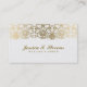 Tons de ouro elegantes vintage design floral sobre fundo branco. Modelo de cartão de negócios de planejador de casamento totalmente personalizável. Se precisar de ajuda para personalizar qualquer um dos meus designs, entre em contato com o designer do ArtOnWear. Formatação de texto livre com ajuda ao vivo disponível por solicitação.