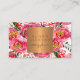 Um sofisticado e glamouroso cartão de visita profissional de luxo feminino, de aparência glamourosa, com padrão de cor-de-água floral fuchsia, com etiqueta quadrada geométrica metálica de cobre de cobre de ouro. Perfeito para estilista de moda | decorador de interiores | designer | arquiteto | artista | florista | planejador de eventos | pintores | outros profissionais criativos — personalize-o com seu nome e detalhes! — Se precisar de assistência, por favor, entre em contato comigo.