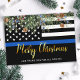 Mande saudações de Feliz Natal e mostre apreço ao seu policial e departamentos de polícia favoritos com este Cartões de agradecimentos de Natal único da Polícia de Thin Blue Line - Preto e azul moderno com folhas e bagas ocas com guião de ouro. Personalizar com mensagem. Este cartões de agradecimentos de natal policial é perfeito para departamentos de polícia, e polícias. COPYRIGHT © 2020 Judy Burrows, Black Dog Art - Todos Os Direitos Reservados. Policial Polícia Natal Obrigado Cartão de visita