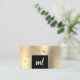 Os cartões de visitas elegantes apresentam pontos de configuração dourados falsos e textura de fundo, iniciais e informações de contato.