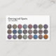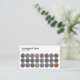 Um modelo de cartão de negócios com um arranjo ordenado atraente de pontos ou botões circulares com um bisel 3d e efeito de sombra gota, cada um com uma textura rochosa diferente (todos diferentes). Detalhes da empresa na frente com nome e detalhes de contato no verso em branco sobre um fundo verde escuro. As cores também podem ser mais personalizadas. Adequado para muitos tipos de negócios, embora especialmente apropriado para empresas relacionadas à Geologia, mineração, perfuração, etc