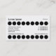 Um na moda moderno negócio/modelo de cartão de visita com um design pontual. Trinta e seis pontos alinhados na frente com o nome da empresa no canto superior esquerdo com o tipo de negócio/cotação à direita. Nome e outros detalhes sobre o inverso no mesmo tema, mas com menos linhas de pontos para acomodar o texto. N.B As cores de fundo desta placa podem ser personalizadas.