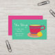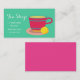 Um cartão de visita do estilo vintage bonito, adequado para um café - café móvel, café ou compro de chá especial. Esta design mostra uma ilustração de uma xícara de chá retrô giro contra um fundo de chá. A cor de fundo pode ser alterada de acordo com o seu gosto. Este cartão de visita é totalmente personalizável para incluir seus próprios detalhes pessoais.