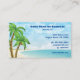 Esta cartão de visita apresenta uma praia tropical com palmeiras. A água é um belo azul e há nuvens espalhadas no céu. Obrigados para passar!