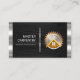 Um fino cobrir de madeira de madeira com uma linha de prata de médio é encapsulado por camadas de prata falsas nas suas bordas esquerda e direita. À esquerda está o nome comercial e uma opção de legenda de slogan para divulgar seus serviços. À direita, está um logotipo criativo de "serra elétrica" que você pode usar. No verso, é utilizado o mesmo tema de design com o logotipo no topo, seguido do nome da empresa e dos dados de contato. Um design excelente para temas de madeira, carpintaria, homem de mão e design de interiores.