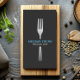 Um cartão de visita único mostrando uma cinza/garfo prateado na frente com seu nome ou nome comercial na frente e no centro. Perfeito para empresas de restauração, chefs pessoais, caminhões de comida, escritores de comida, restaurantes, etc. © 1201AM CREATIVE