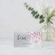 Esta cartão de visita profissional apresenta ramos cor-de-rosa de cereja florescentes em um fundo falso de folha prateada e uma grande caligrafia manuscrita para o seu nome. Cartão de visita floral de luxo para maquiadores, spa, paisagismo, planejadores de casamento, cosmetólogos, salão de beleza...