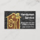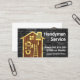 Um cobrir de parede suja apresenta uma estrutura de construção dourada que tem ferramentas de mão-obra douradas dentro. No topo está o nome comercial "Serviço de mão", os detalhes de contato e uma opção de legenda de slogan que você pode alterar. No verso, em um cobrir branco, no topo está um logotipo de martelo dourado que você pode usar, seguido do nome comercial, dos detalhes de contato e de uma legenda de slogan que você pode mudar. Este cartão seria excelente para empreiteiros de construção, para uso prático. #handyman #constuctionhandyman #homerepaircontratante #construcder #remodelder #handymantools #buildingcontratante #homerepair #interiordesign #generalcontratante #telhador #telhador #telhador #empreiteiro #masonry #zazzlemade