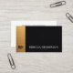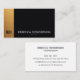 Impress instantly with this sophisticated black and gold business card design. The left-side brushed gold bar showcases your monogram with metallic elegance against rich leather texture, paired with a fresh white back for sharp readability of your details. Crafted for those who value modern contrast and premium minimalism — it radiates quiet confidence, professionalism, and success at first glance, making every introduction more memorable and impactful.