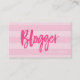 Cartão De Visita Preppy Pink Strips Script Blogueiro de Mídia Socia