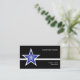 Design moderno com uma estrela azul e branca "brilhante, cintilante" sobre fundo preto. Modelo de cartão de negócios com um design personalizável para você personalizar com seu próprio texto, imagens e ideias. Note que esta é uma Imagem impressa criada usando fotografias originais e técnicas digitais, que ela não brilha ou contém faíscas reais.