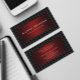 Preto minimalista luxuoso e vermelho com padrão de triângulo preto cartão de visita profissional. Este design elegante moderno é construído sobre um simples modelo que permite inserir seu próprio endereço, email, endereço de mídia social, número de telefone e número de telefone celular.