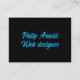 Este cartão de visita combina a sofisticação moderna com um fundo preto elegante e texto azul em negrito. A frente destaca o nome e o cargo em uma fonte limpa e profissional, criando uma impressão forte e memorável. A parte traseira apresenta informações essenciais de contato — e-mail, número de telefone e site — organizadas de forma clara em texto azul contra o fundo preto para excelente legibilidade. Essa design de dois lados combina minimalismo com um toque de vibração, fazer-a na moda e funcional para transmitir profissionalismo.