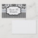 Apresentava de forma elegante um cartão de visita com fundo damasco preto e branco com banda azul de gelo. Um rótulo no centro está disponível para texto.