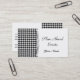 Este design de cartão de visita é certo atrair a atenção e ajudá-lo a estar para fora na multidão. Uma parte corajosa dos artigos de papelaria ou do promocional pode ser uma grande ferramenta da propaganda para seu negócio. Use-os você mesmo, dê-os aos empregados, ou use-os como o cliente dá-aways. Este design tem um fundo que seja branco com um teste padrão preto e branco do houndstooth. Aperfeiçoe para todo o negócio mas especialmente excelente para o salão de beleza nupcial, planeamento wedding, planeamento do evento, restauração, salão de beleza do prego, termas, jóia, cosmetologist, forma, consultante de beleza, ou quando você gostaria de um toque elegante.