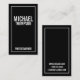 Cartão de visita preto e branco preto-e-branco com informações no estilo de fonte de sans branco-negrito com borda branca sobre fundo preto. Perfeito para designer, fotógrafo, consultor e muitas outras profissões.