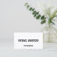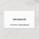 Cartão de visita a preto e branco preto-e-branco com informações em negrito estilo de fonte sans serif.