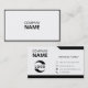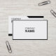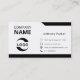 Cartão de visita branco simples com quadro preto, linhas e logotipo. Ícones incluíam endereço, telefone do site e email. Você pode alterar a cor de fundo com a ferramenta design