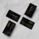 Cartão de visita profissional elegante em preto e dourado com campos modelo para nome, nome/cargo da empresa, logotipo (foto ou outro gráfico) e informações de contato.Você pode personalizar o tamanho do texto, a fonte e a cor para se adequar à sua preferência pessoal.