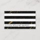Um design de cartão de visita de alta moda com um mármore preto luxo com falsos galhos dourados e fundo listrado branco com seu nome em uma elegante fonte itálica. O design preto e branco é simples e chique para uma estética elevada para a sua marca. Excelente para designers de interiores, estilistas de moda, boutiques e salões. © 1201AM CREATIVE