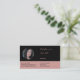 Elegante Cartão de visita preto e rosa profissional, projetado como um modelo, ele tem espaços reservados para fotos de perfil profissional, nome, expertise, contato virtual e detalhes de contato físico. O verso apresenta um padrão de faixa de na moda, em rosa e preto, com forma circular segurando as iniciais e sob o nome da empresa. Para obter mais ideias sobre marcas, visite www.KBMD3signs.com. Para obter assistência para personalização, entre em contato com info@KBMD3signs.com.