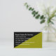 Você é uma mulher que opera um pequeno negócio? A cartão de visita feminina simples, mas distinta, no verde-folha e no preto funciona bem para muitas dessas empresas. Design de cartão de visita de 2 tons para todos os fins, adequado para qualquer ocupação ou negócio. Observe que todo o texto no cartão real será branco (não verde claro como pode ser mostrado aqui) a menos que você personalize para uma cor diferente.
