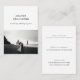 Um cartão de visita moderno e mínimo com uma foto de sua escolha e uma tipografia mínima sobre fundo branco. Modelos de texto totalmente personalizáveis, use a ferramenta design para obter flexibilidade de cheio. A escolha perfeita para fotógrafos, fotógrafos de casamento, criativos ou qualquer outro negócio.