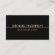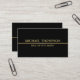 Mini cartão de visita preto e Dourado profissional que caracteriza o nome e a profissão no estilo de pia batismal clássico do serif do ouro com linha do ouro no meio.