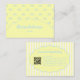 Pastel trendy yellow blue bow stripe pattern business card designed for pretty, girly, feminine brands. Perfect for handmade baby clothing boutiques, makeup artists, and small business owners. Features stylish QR code integration with a soft vintage-inspired aesthetic for modern, eye-catching branding.