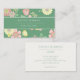 Estes cartões de visitas contemporâneos com fundo floral colorido em verde, rosa e amarelo, são na moda e brincalhões. O design inclui um conjunto moderno de fontes que combinam fundo verde e marfim no verso. Faça uma impressão duradoura com estas cartas retrorreflectoras divertidas e chicas.