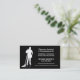 Um cartão de visita à moda simples para algum profissional da limpeza da casa ou do guarda de serviço do negócio. Texto branco fácil de ler em um fundo rico da falta com uma imagem gráfica do estilo reverso da silhueta de uma pessoa que guardara um espanador úmido molhado em uma mão e em um pano de limpeza na outro com um efeito de sombra fraco no assoalho encerado brilhando. Diversas áreas do modelo do texto para sua informação do contato e do negócio. Escolha toda a cor escura para o fundo usando as opções avançadas da personalização.
